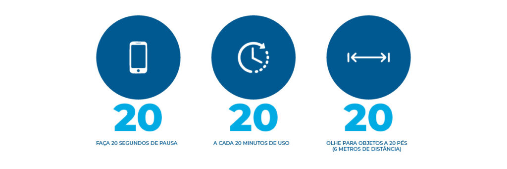Regra 20-20-20: a cada 20 minutos de uso, olhar por 20 segundos para algo a 6 metros (ou mais) de distância.