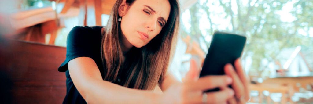 Necessidade de afastar o livro ou o celular para enxergar melhor.